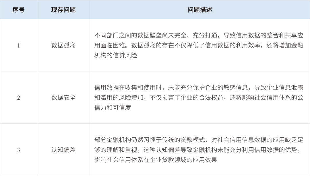 一是政策端,需要加快数据安全、信息保护等配套法律法规和实施细则的完善,明确信息数据收集、存储、使用和共享应用的规则和规范,确保企业相关敏感信息的数据安全和隐私保护。同时,从政策端完善信用数据的共享机制,打破各部门间的数据壁垒,推动政务数据、市场数据和社会行为数据的全面整合和高效共享,通过建立和完善统一的社会信用信息共享平台,实现多维数据互联互通,为金融机构提供更全面、准确的社会信用信息支持。此外,仍需加强“信易贷”平台的推广与应用,加大先进地区“信易贷”模式宣传推广力度,鼓励金融机构主动对接全国中小企业融资综合信用服务平台,积极创新开发“信易贷”产品和融资服务;鼓励地方政府出台本地“信易贷”平台推广应用的支持政策,加强“信易贷”平台宣传,提高企业在“信易贷”平台注册量与信用档案备案量,促进“信易贷”平台在贷款领域的应用。