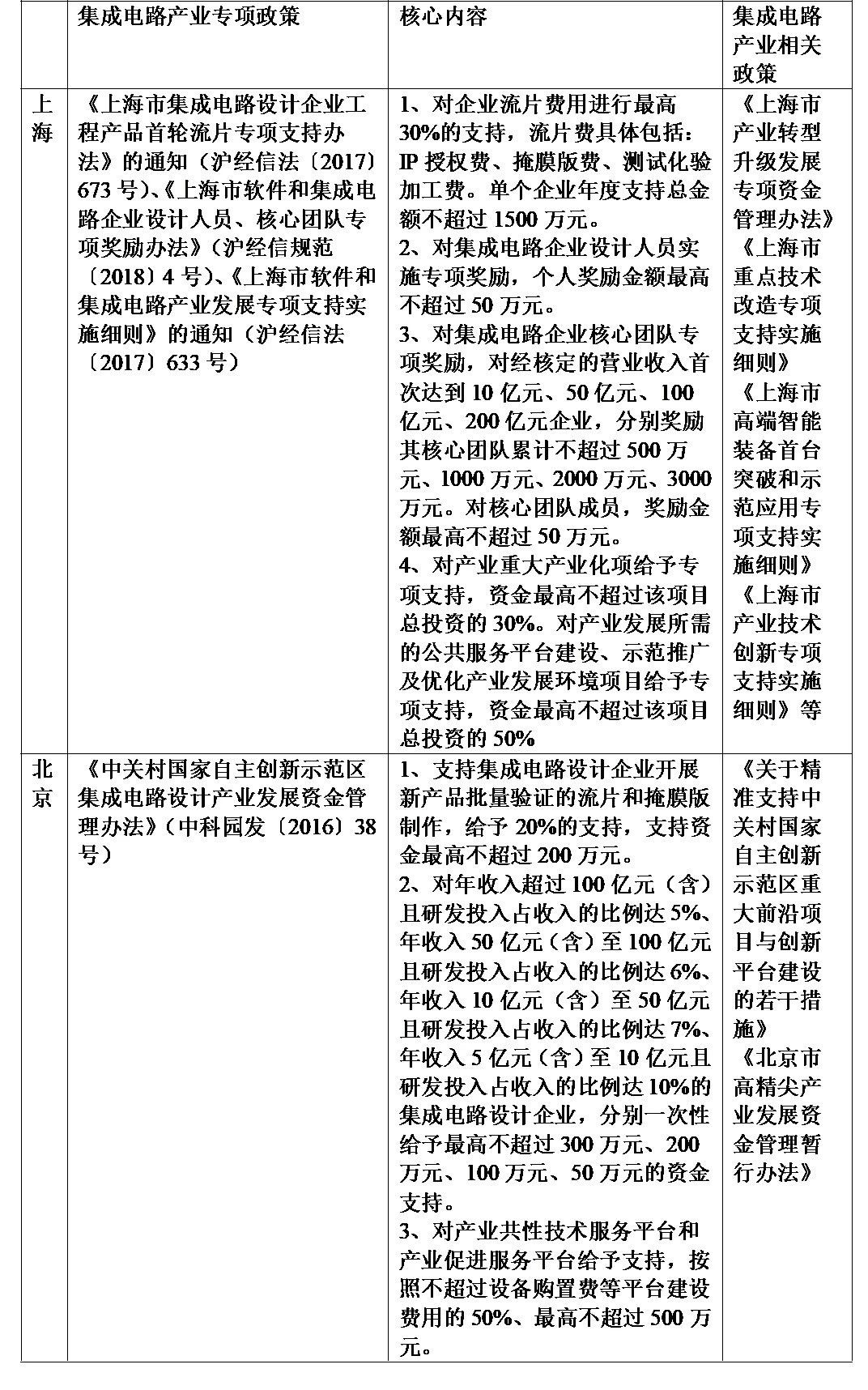 表3:上海及北京集成电路相关政策对比