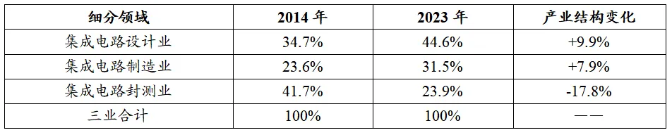 表1 2014-2023年我国集成电路产业三大主业产业结构情况