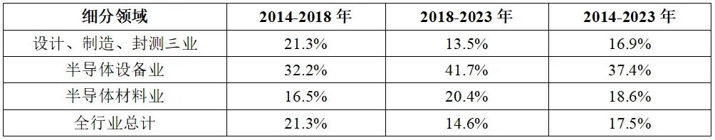 表3 2014-2023年我国集成电路支撑业销售收入增速变化情况