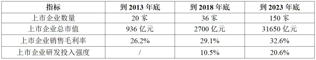 资本市场助力产业升级,上市企业数量质量双飞跃。根据东方财富金融数据统计(表4),截止到2013年底,我国实现A股上市的半导体企业仅有20家,总市值不足千亿元,平均销售毛利率26.2%。而到2023年底,上市企业数量超过150家,总市值超过3万亿元,平均销售毛利率32.6%。尤其是2018-2023年,由于科创板的设立,带动集成电路产业在资本市场实现“加速跑”,5年间上市企业数量和总市值分别实现超过4倍和10倍的增长,上市企业平均销售毛利率和研发投入强度也实现大幅跃升。