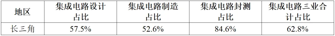 从产业规模来看,长三角地区集成电路产业优势地位日益凸显。据长三角集成电路融合创新发展产业联盟数据(表8),2023年上海、江苏、浙江、安徽四地集成电路产业收入规模占全国的比重超过60%。其中设计、制造、封测三业收入规模占全国的比重分别为57.5%、52.6%和84.6%,长三角地区进一步确立其中国集成电路产业基础最扎实、产业链最完整、技术最先进的区域优势地位。
