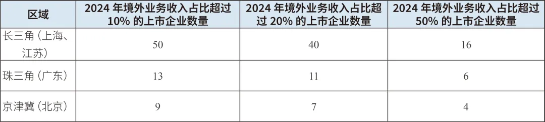表3: 2024年不同境外业务收入占比下各区域集成电路上市企业数量