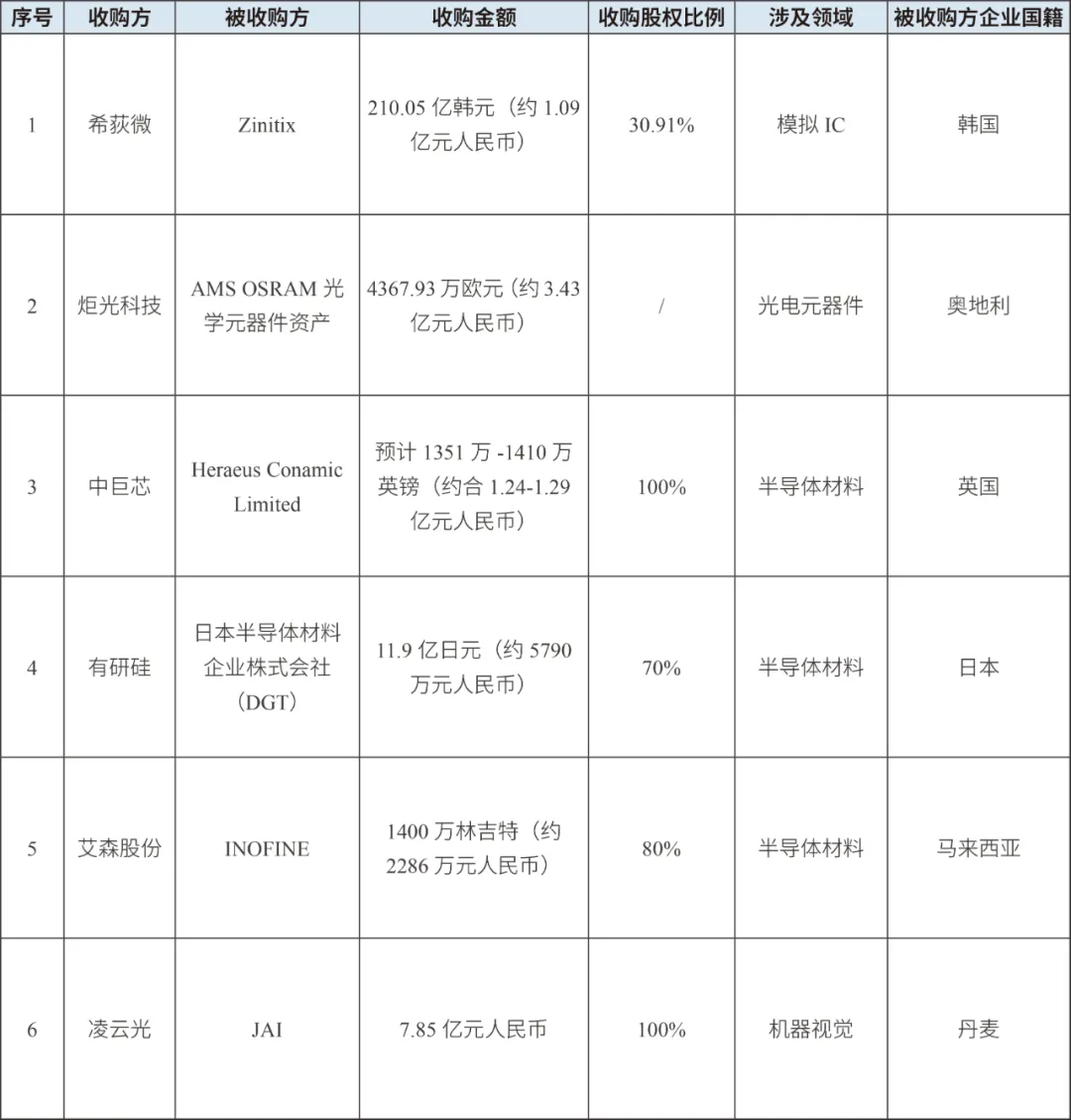 表5: 2024年我国集成电路上市企业开展的海外并购项目