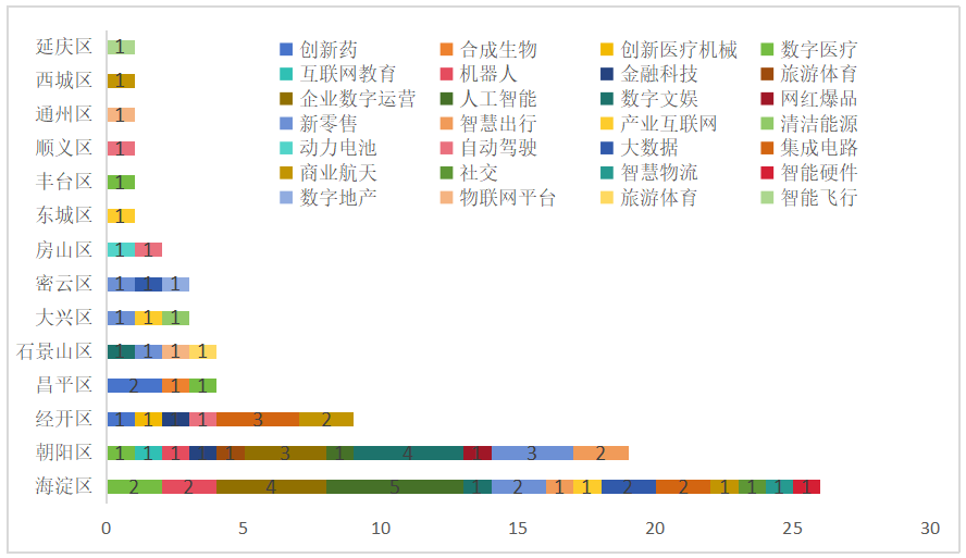 图1 2022年北京市独角兽企业空间及赛道分布