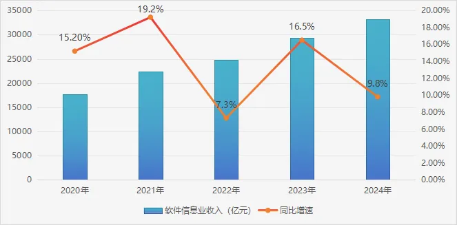 “十四五”以来,北京信息软件业保持高速增长,成为全市经济高质量发展的核心支撑。2021年北京信息软件业1实现收入2.2万亿元,2024年收入突破3.3万亿元,仅用三年时间再迈上一个万亿级台阶,占全国信息软件业比重近四分之一。2024年,北京信息软件业实现增加值11068.8亿元,同比增长11.0%,占地区生产总值的22.2%,成为全市经济的第一支柱。