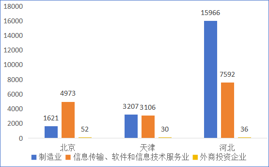 根据天眼查数据,一季度,京津冀三地制造业新设企业20794家,信息传输、软件和信息技术服务业新设企业15671家,总计36465家,较上年同期增长90.2%。新设制造业企业中,医药制造业325家,汽车制造业645家,计算机、通信和其他电子设备制造业870家,专用设备等装备制造业4003家。在招引外商投资企业方面,京津冀三地新设立外商投资企业669家,其中制造业53家,信息传输、软件和信息技术服务业65家,分别较上年同期增长60.6%和58.5%。