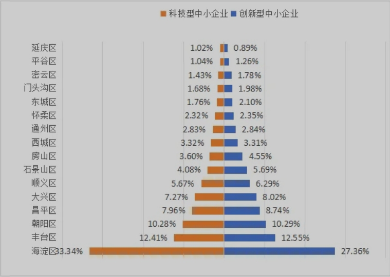 图1 北京市科技型中小企业和创新型中小企业区域分布 2.两类企业培育导向基本一致,创新型中小企业指标体系覆盖面更广。 科技型中小企业和创新型中小企业的评价指标均关注企业研发创新活动、研发成果产出情况,在研发投入、知识产权产出上分别设置计分指标。科技创新型中小企业在研发活动上设置科技人员指标,考核科技人员占企业职工总数的比例,更聚焦于企业本身在研发活动上的要素投入。创新型中小企业同时要考核企业的成长性和专业度,对企业主营业务收入、资产负债率、主导产品所属领域和产生收入占比情况设置计分指标。 这种差异从直通指标设置中也可体现,两类企业如获得高级别科技奖励、拥有其他科技创新类企业资质、成立省部级研发机构均可获得直通资格。不同的是,对将先进技术转化为标准、在市场形成一定自我保护壁垒的中小企业设置给予科技型中小企业称号“直通车”资格(主导制定过国际标准、国家标准或行业标准),对在资本市场获得了认可的、拥有一定资本实力的中小企业可获得创新型中小企业称号“直通车”资格(近三年内新增股权融资总额(合格机构投资者的实缴额)500万元以上)。 3.两类企业创新目的不同,在创新能力和产业支撑方面各有侧重。 科技型中小企业更多考虑处于研发阶段且暂未形成一定经济收入的企业,如在研发费用投入上设置二选一灵活指标,企业可自行选择研发费用与销售收入和成本费用支出相比较取得优势指标。在科研人员上的关注同样体现出科技型中小企业对研发投入上的倾斜,不仅要求企业投入更多的研发资金,在科研人员力量配备上也同步提出要求并作为门槛条件(科技人员指标得分不得为0分)的强制要求,体现科技型中小企业的研发属性。创新型中小企业仅设置了研发费占营业收入比例这一个选项。 在科技创新成果产出方面,对于企业获得知识产权情况,科技型中小企业根据获得Ⅱ类知识产权数据可在此项指标中得到20%—80%的分数,1项I类知识产权即可获得满分,对处于研发期的中小企业更加友好,而创新型中小企业如仅Ⅱ类知识产权,仅可获得12.5%的分数,无关数量,想取得更高分数需要获得更高价值专利,如高价值I类专利或者自主研发的I类知识产权。同时认定企业所属产业为新一代信息技术、生物、高端装备制造、新能源、新材料等战略新兴产业且已初具规模形成较好的经济收益,对企业能否支撑产业发展有更高的要求。 4.两类企业培育路径均呈“阶梯型”,主管部门职责不同影响资源配置效率和效果。 创新型中小企业是工业和信息化部优质中小企业梯度培育的第一级,也是企业走“专精特新”之路的第一步,企业资质认定后即正式进入梯度培育体系,沿着“创新型中小企业—专精特新企业—国家小巨人企业-隐形冠军/单项冠军”道路发展。科技型中小企业同样可看作科学技术部的对于科技型企业培育工作的第一级,企业按照“科技型中小企业—高新企业—独角兽企业”阶梯向上发展。 根据现有政策和培育体系,两者在“攀爬”阶梯过程中,每升一级都可获得更加精准、适合和力度更强的发展支撑,通过分析近年来针对两类企业出台的政策,在知识产权、人才引进、研发及成果转化、数智转型和金融支持上均有支持,对于能提供培育资源的载体,如孵化器之于科技型中小企业,示范平台及示范基地、专精特新工作站、专精特新园区之于创新型中小企业,均有相关政策或资金支持。科技型中小企业独有的研发费用加计扣除、延长亏损结转年限等政策和创新型中小企业后续可享受的上市融资、品牌培育、融链补链等政策的独有性,也根据认定主管部门的自身职责提供政策支持。 5.两类企业在产业链融通中均具有重要的支撑作用,但扮演角色和融链环节不同。 科技型中小企业与创新型中小企业在企业融通中均体现出重要的支撑作用,科技型中小企业功能聚焦在研发创新,更利于产业科技创新发展。相较而言,创新型中小企业在融链时可在多个环节形成支撑,且可在企业自身内部形成节点链接,可更有效提升产业的发展水平和竞争力。两者的融通差异主要表现在创新链和产业链,一是融通阶段与功效不同,科技型中小企业一般在研发阶段融入链条,强调将科技成果转化为实际产品或服务,提供研发技术支持,而创新型中小企业在链条全过程均可融入,更注重实现科技成果的转化落地,实现商业化模式创新;二是融通路径不同,科技型中小企业一般通过产学研合作、技术转让等方式,而创新型中小企业则更多地通过创新创业、产业链配套和市场拓展等方式;三是融入生态也有所区别,科技型中小企业偏向科技创新,主要融入科技创新生态,包括高校、科研机构、其他科技企业等,创新型中小企业考虑企业全周期发展,主要融入创新创业生态,包括创业者、投资机构、孵化器等。 综上,北京市科技型中小企业和创新型中小企业从遴选要求、目标群体、培育方式、发展路径、资源供给上有显著的共同点,两类企业群体重合度高,均属于科技创新中小企业,创新目的、培育发展方向和产业链融通角色等差异的产生主要因主管部门的职责范围制约、培育路径不同等现实原因。一个群体、两套培育路径,除了会产生政策和公共服务资源浪费,造成企业同一事项的重复性支持、财政资金过于分散无