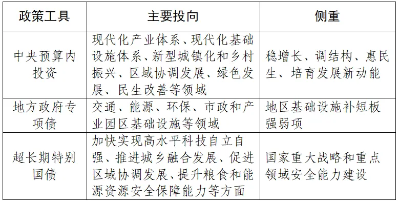 一是超长期特别国债与中央预算内投资和地方政府专项债合力助推有效投资扩量