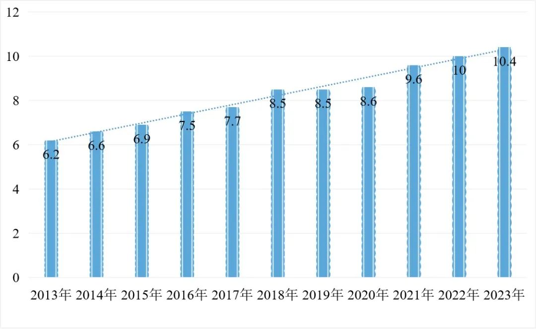 图3 2013年-2023年京津冀地区生产总值(可比价)(万亿元)