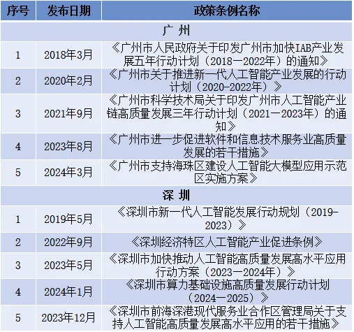 表1 四地人工智能产业政策一览表(不完全统计)