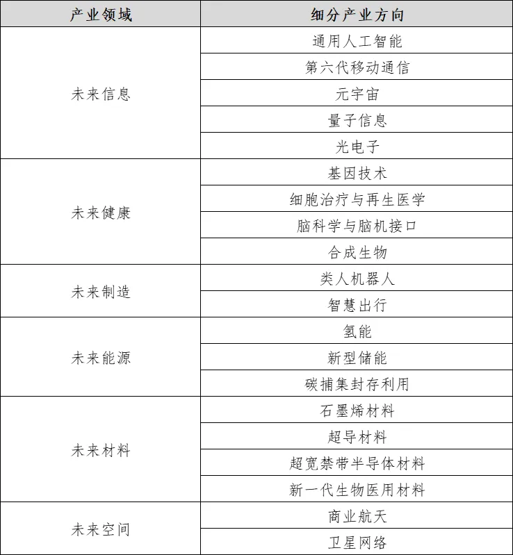 2023年9月8日,北京市发布《北京市促进未来产业创新发展实施方案》,提出北京市下一步重点发力的未来信息、未来健康、未来制造、未来能源、未来材料、未来空间六大产业领域和20个细分产业方向,进一步完善、明确了北京市高精尖产业体系中“一批未来前沿产业”的细分方向。