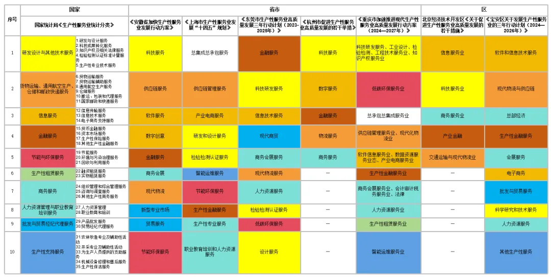 图1 国家及部分地区生产性服务业重点发展领域