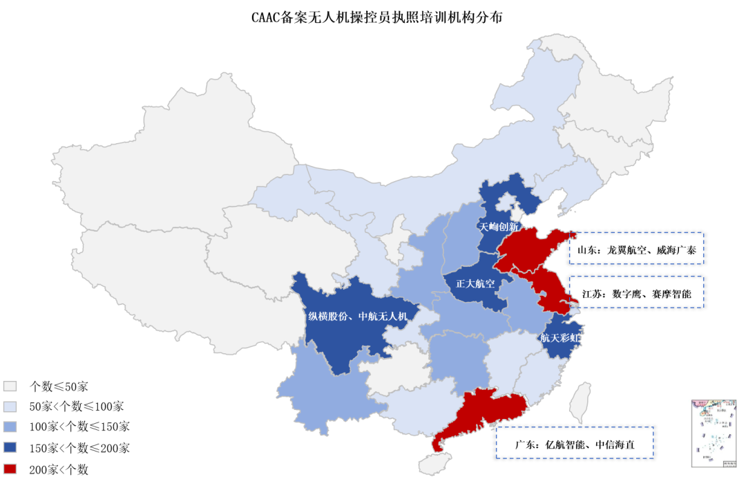 图3 我国CAAC备案的无人机培训机构分布情况