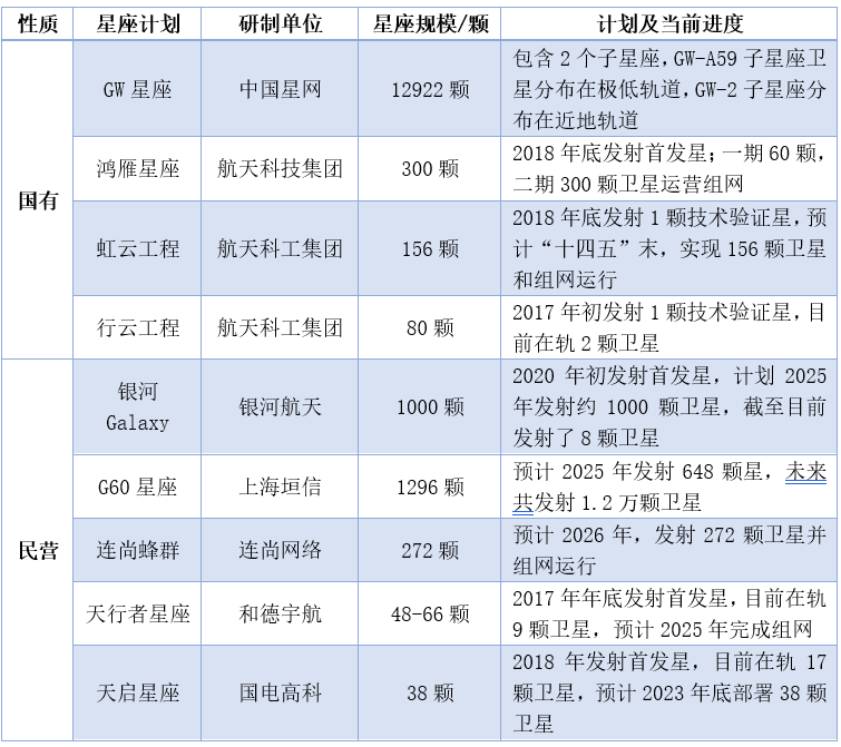 (二)星座计划启航,产业上游进入快车道 以星网公司、航天科工、航天科技为代表的国家队和以银河航天、和德宇航为代表的头部民营企业,积极加快星座部署,旨在通过建设大规模的卫星网络来实现全球范围内的无缝覆盖和宽带接入。如GW星座、鸿雁星座、虹云工程、行云工程、银河Galaxy、G60星座等项目。 表3 我国部分卫星互联网星座建设计划