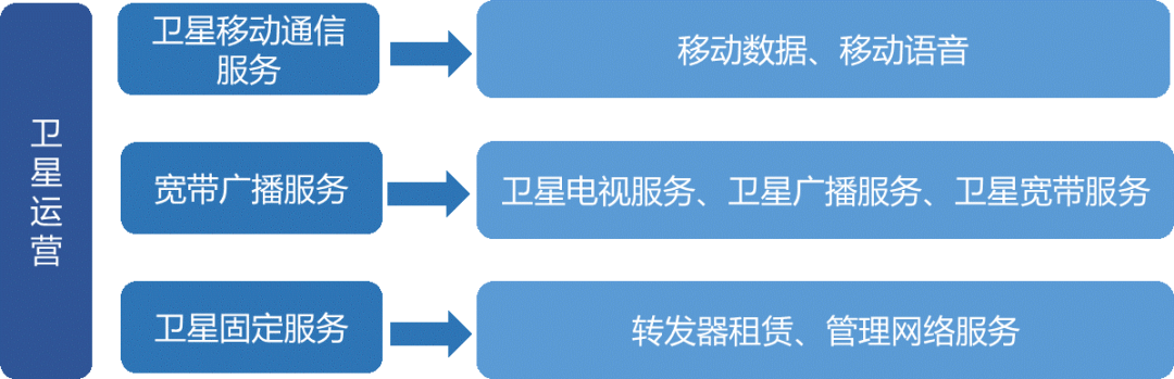 图5 地面设备产业全景图 我国地面设备制造行业综合化程度较高,涉及领域广泛,吸引众多跨行业参与者,市场竞争相对比较激烈。同时,我国卫星地面设备制造产业呈现出明显的区域集聚特点。目前,形成五大产业集聚区,包括京津冀、珠三角、长三角、华中以及川渝陕,其中,北京、上海、深圳、重庆、西安等重点城市展现出良好发展势头。国家队代表企业包括海格通信、普天科技等,专注于通信网络设备、终端产品和解决方案的研发、制造和销售。民营队代表企业包括华力创通、柒星通信、星网宇达等,其中,柒星通信重点研发融合公网、专网通信的网络通信设备与终端产品。 (四)卫星运营及服务环节及代表企业 卫星运营及服务主要包括卫星移动通信服务、宽带广播服务以及卫星固定服务等,具体细分领域如下。