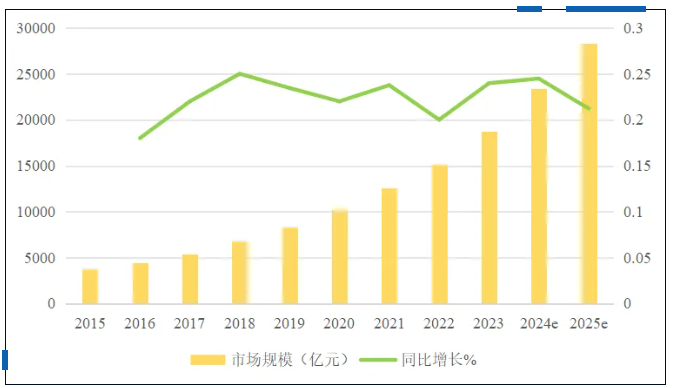 图3 2015-2025年中国商业航天市场规模及增长率