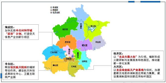 北京立足经开区、大兴区商业火箭企业集聚优势,做强“南箭”;立足海淀区商业卫星企业集聚优势,做强“北星”,辐射带动其他各区,形成全市产业协作互补格局。上海围绕闵行上海航天城、浦东卫星互联网科研基地、临港卫星制造集聚区、青浦北斗空间信息应用示范区、松江卫星产业基地等,基本形成“核心主体+东、西两翼”的商业航天空间布局。