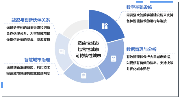 国际上,智慧城市建设主要关注包容性、可持续性与适应性三个方面,强调智慧城市建设对于提高社会包容性、促进城市可持续发展以及提高城市韧性、快速应对挑战的重要性。影响智慧城市建设的关键驱动因素包括数字基础设施、数据管理与分析、融资与创新伙伴关系及智慧城市治理。