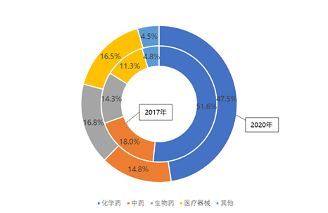 图2 北京市2017年和2020年生物医药产业结构