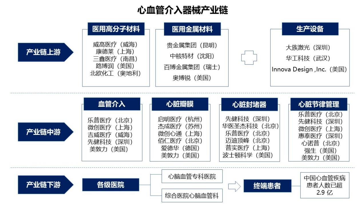 心血管介入器械产业链主要分为三个环节: