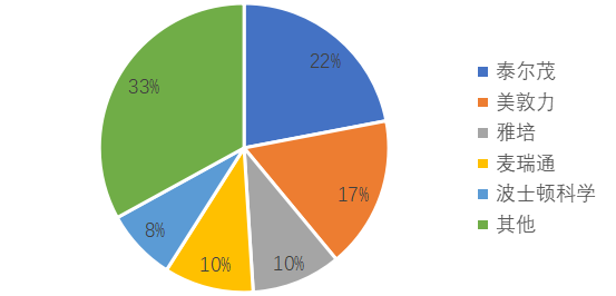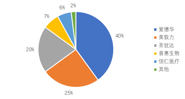 图72021年中国心脏起搏器市场份额情况