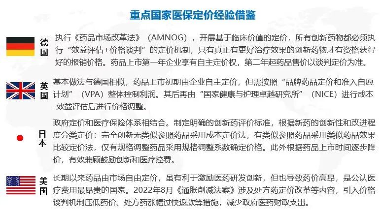 ——政府组建多方利益主体谈判小组,通过公开、公正的医保谈判以达成共识,并对药品支付价格进行动态调整。谈判结果通过价格/数量合同、利润控制合同、疗效预期合同等来实现。谈判后的药品降低价格,让大部分人用得起药,也较大程度增加药企产品销量。所有的国家均采用药价动态调整机制,大多数国家通过综合考虑药品使用量、利润或重新评估临床价值等方式下调创新药价格。