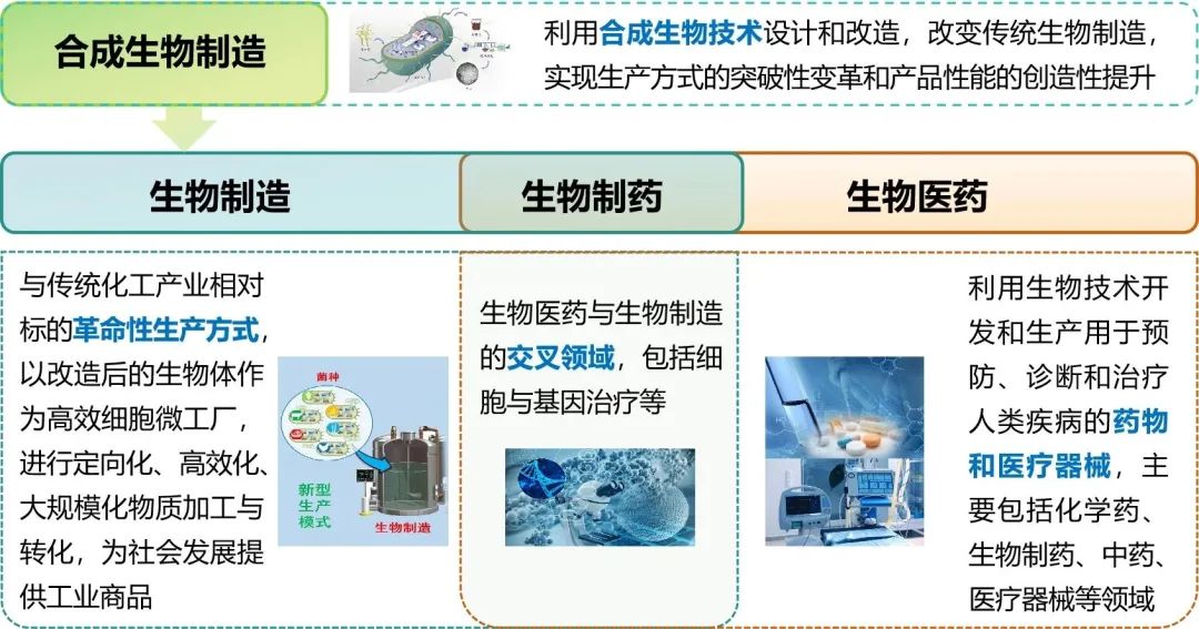 图4 合成生物制造与生物制造、生物医药关系图