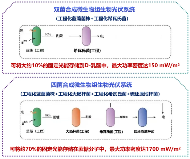 图4 双菌、四菌合成微生物组生物光伏系统对比