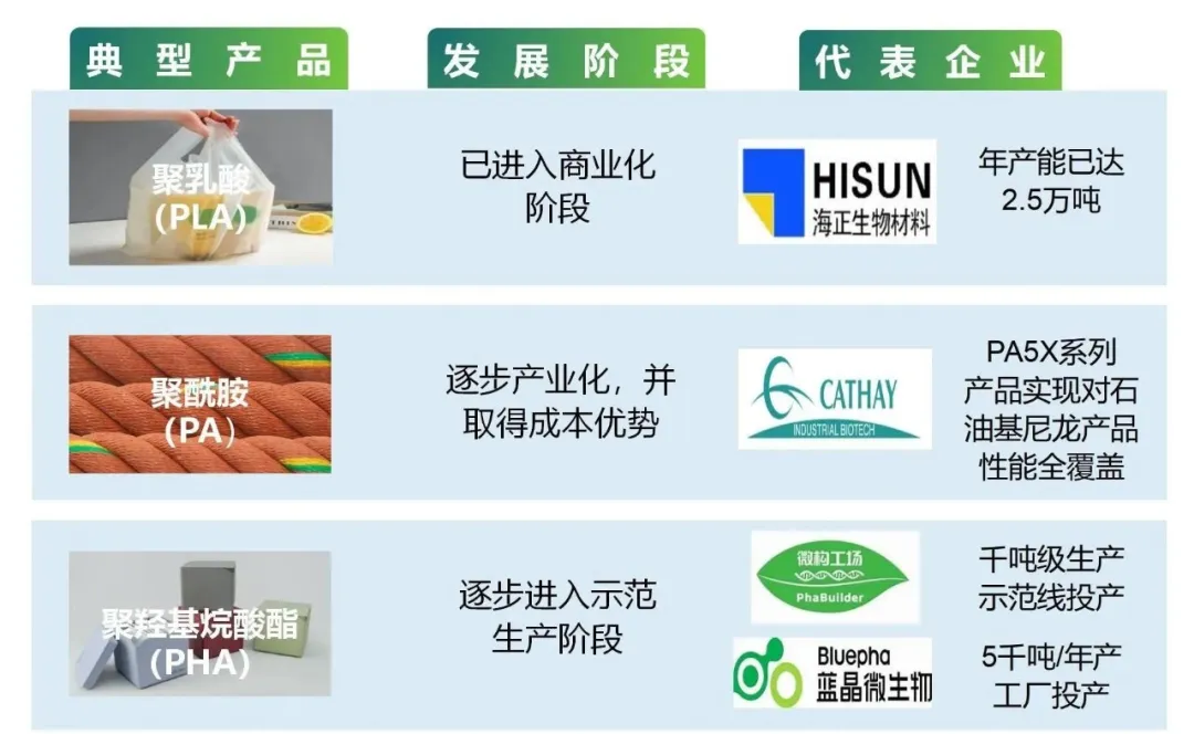 生物基材料是指利用生物质为原料或(和)经由生物制造得到的材料,包括由上述方式得到的生物醇、有机酸、烷烃、烯烃等基础生物基化学品和糖工程产品,也包括生物基聚合物、生物基塑料、生物基化学纤维、生物基橡胶、生物基涂料、生物基复合材料及各类生物基材料制得的制品等,广泛应用于医疗、电子、纺织、包装、食品等领域。随着生命科学基础研究不断取得创新性突破和合成生物等生物技术加速演进,生物基材料已成为引领当代世界科技创新和循环低碳经济发展的又一新兴产业,产品种类速增、经济性显著增强,国内已形成以聚乳酸(PLA)、聚酰胺(PA)率先产业化、聚羟基脂肪酸酯(PHA)等多种生物基材料快速发展的格局。据经合组织(OECD)预计,到2030年,全球大约有35%的化学品和其他工业产品来自生物制造,生物基材料迎来历史性发展机遇。