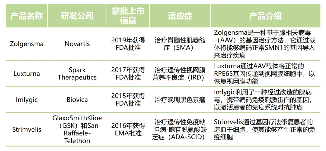截至目前,合成生物技术在基因治疗领域已有一些产品获得了国外监管机构的批准,进入了市场。