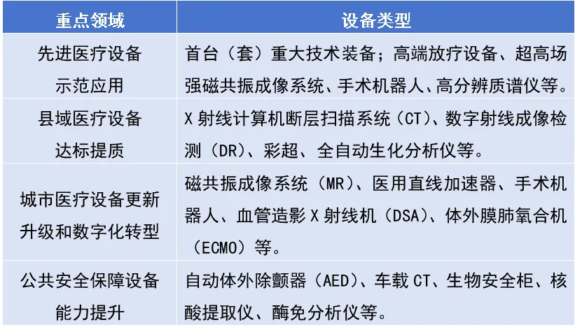 表1-1 医疗卫生领域设备更新重点