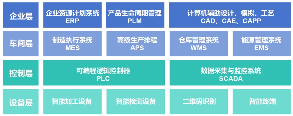 医药企业数字化车间顶层设计架构当前主要包含设备层、控制层、车间层和企业层四层,旨在通过智能制造关键技术创新和智能化信息系统集成创新,实现车间的数字化、智能化升级。