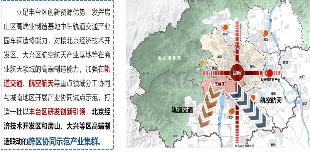 规划梳理总结丰台区高精尖产业现状和形势,根据丰台区既属“一主”,又处“一轴”沿线,是“四个中心”功能的集中承载地区以及促进丰台科技创新和金融服务的融合发展区功能定位,提出构建“2231”高精尖产业结构,加快成为首都发展的新空间、科技创新的主引擎和创新型总部经济聚集区的规划思路和相应举措。
